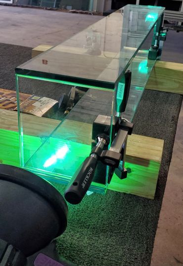 We use UV light-cured adhesive to achieve seamless, ultra-clear bonds in our glass projects. This high-precision technique ensures strength, elegance, and an invisible finish — perfect for showcases, tables, and custom pieces.
